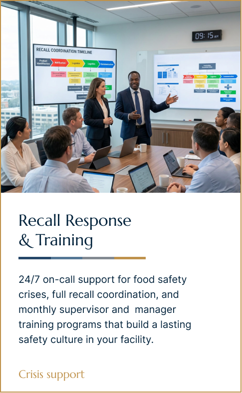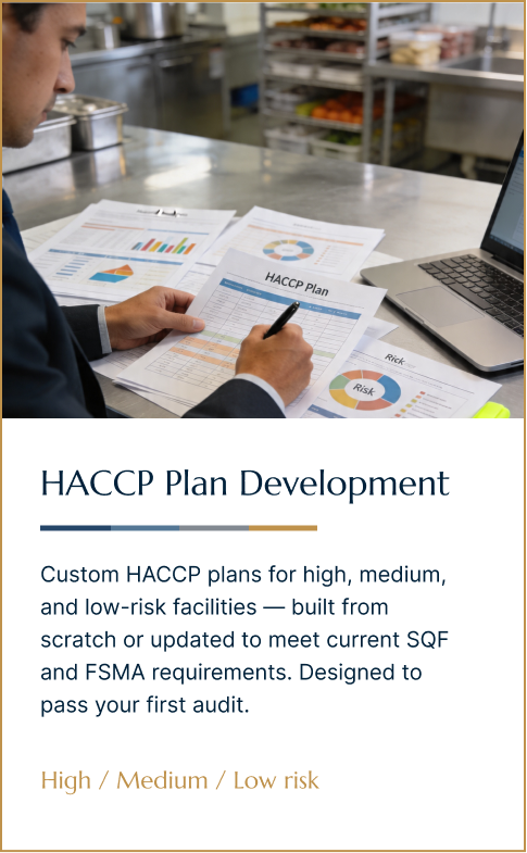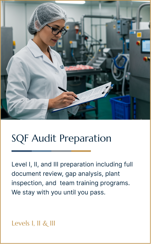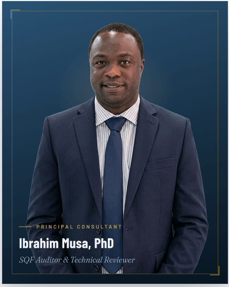 Ibrahim Musa, PhD works directly with your team — no handoffs, no account managers. As a certified SQF Auditor and Technical Reviewer with a proven track record across Trader Joe’s, Wegmans, Tyson, and Conagra supply chains, you get PhD-level expertise on every engagement.